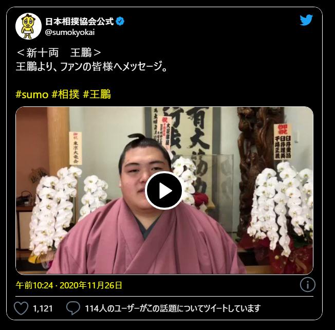2021年1月場所での新十両昇進にあわせ、「王鵬」と改名する