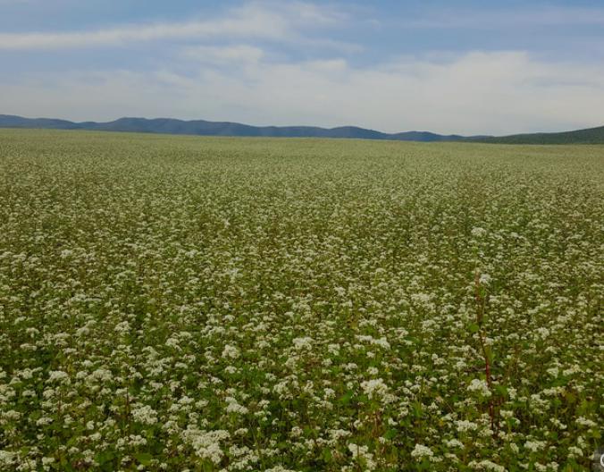 モンゴル セレンゲ県には元横綱朝青龍ドルゴルスレン・ダグワドルジさんが所有するソバ農園が20万ヘクタールあって、このような広大なソバ農園が広がっています
