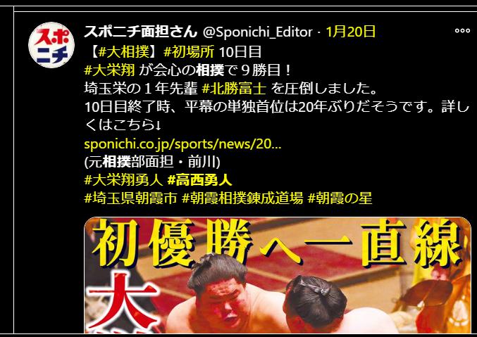 埼玉県出身力士として初めて優勝した大栄翔は生粋の「埼玉っ子」。小学生の時に通っていた道場の恩師は成長した愛弟子の姿に「大したものだ。鼻が高い」と喜んでいますhttps://t.co/uz67BJjciC