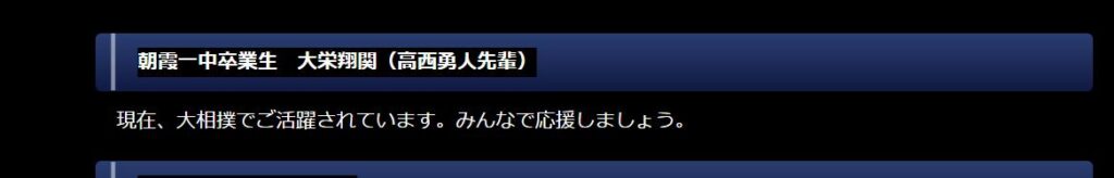 今でも朝霞第一中学校のホームページには大先輩の大栄翔が活躍しているので応援しましょうと