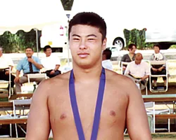 英乃海はがっしりとした体格を生かした正攻法の押し相撲を