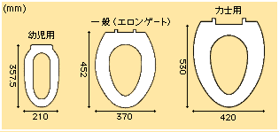 この写真は幼児用便座と一般用便座と力士用便座の違いが分かるものですがこうやってみると大きいのがわかりますよね。