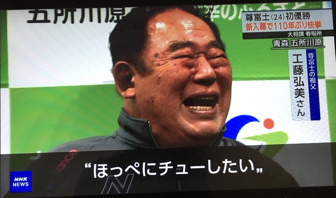 尊富士の祖父・工藤弘美さん 「きょうの相撲は最高だ」 「今日は無理だと思った。朝起きて「今日大丈夫か」と思ったら大阪の方から出るって話を聴いた。親方が無理しないといっていたけど本人が出たいといったみたいだ。」と朝から孫の尊富士のことが気になって前日は眠れなかったんでしょうね