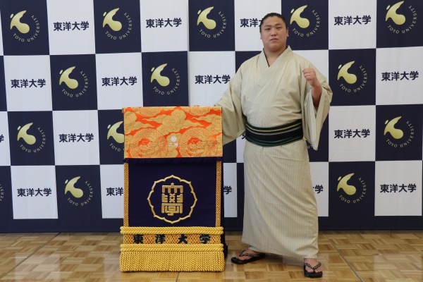 2018年4月20日には東洋大学から化粧まわしを贈られているのです。